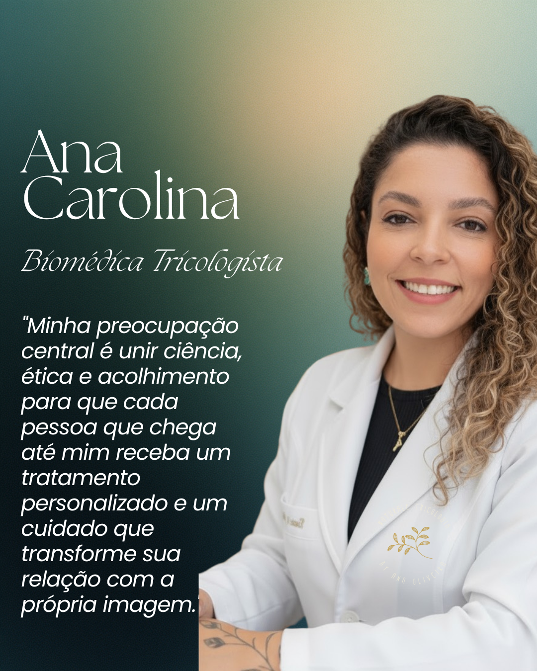 Biomédica Tricologista (CRBM 66901), fundadora e responsável técnica da Naturale Tricologia. Atua unindo ética, ciência e acolhimento, desenvolvendo tratamentos personalizados que combinam tecnologia, precisão e cuidado humano.